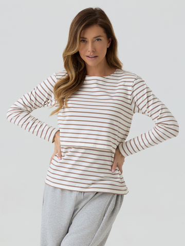 Полосатый лонгслив с удобным секретом для кормления и нашим фирменным принтом. Подходит и будущим, и кормящим мамам: секрет для доступа груди спрятан под коротким слоем.