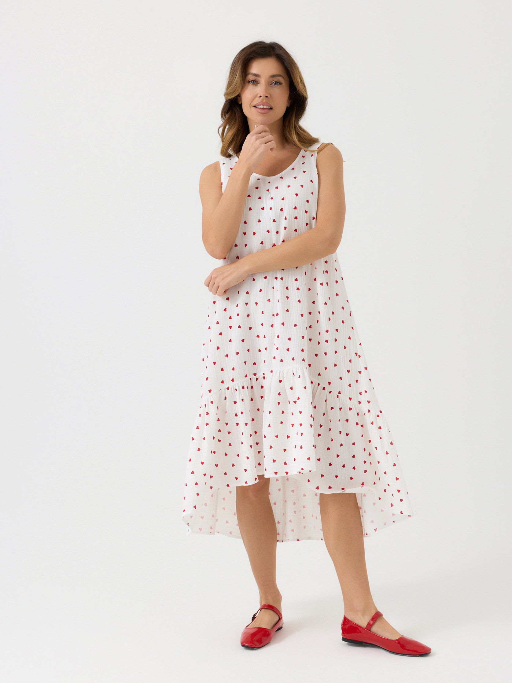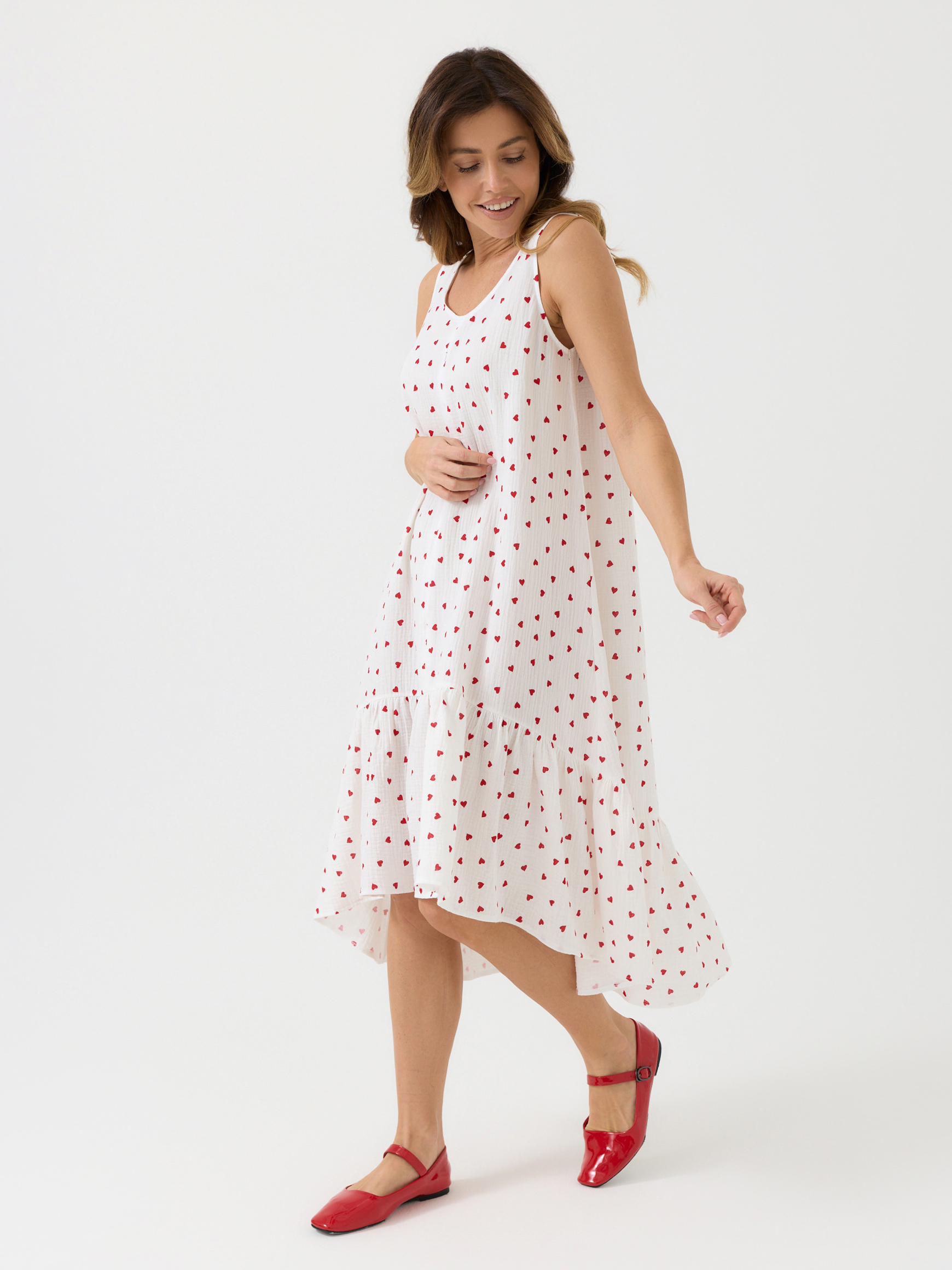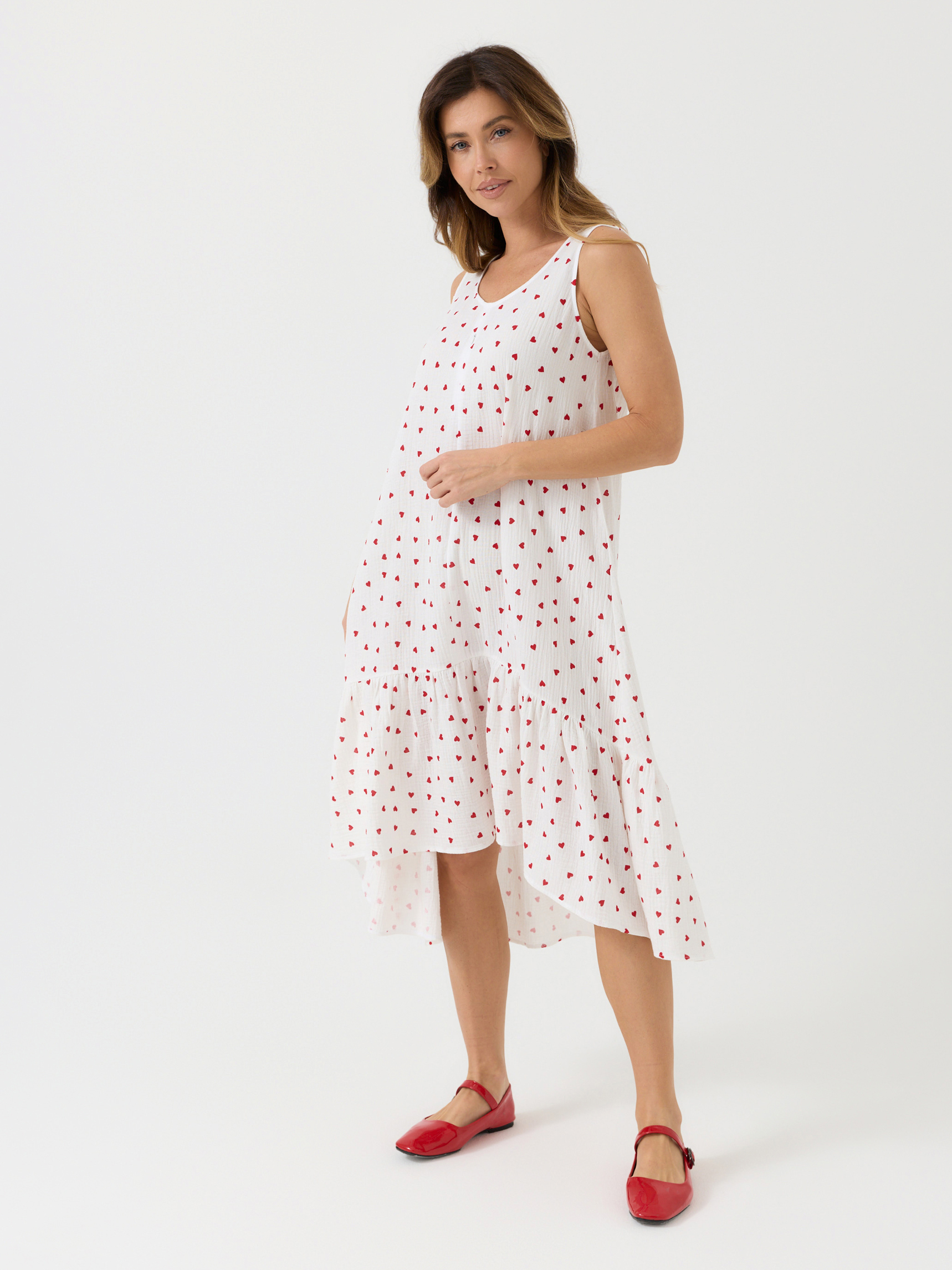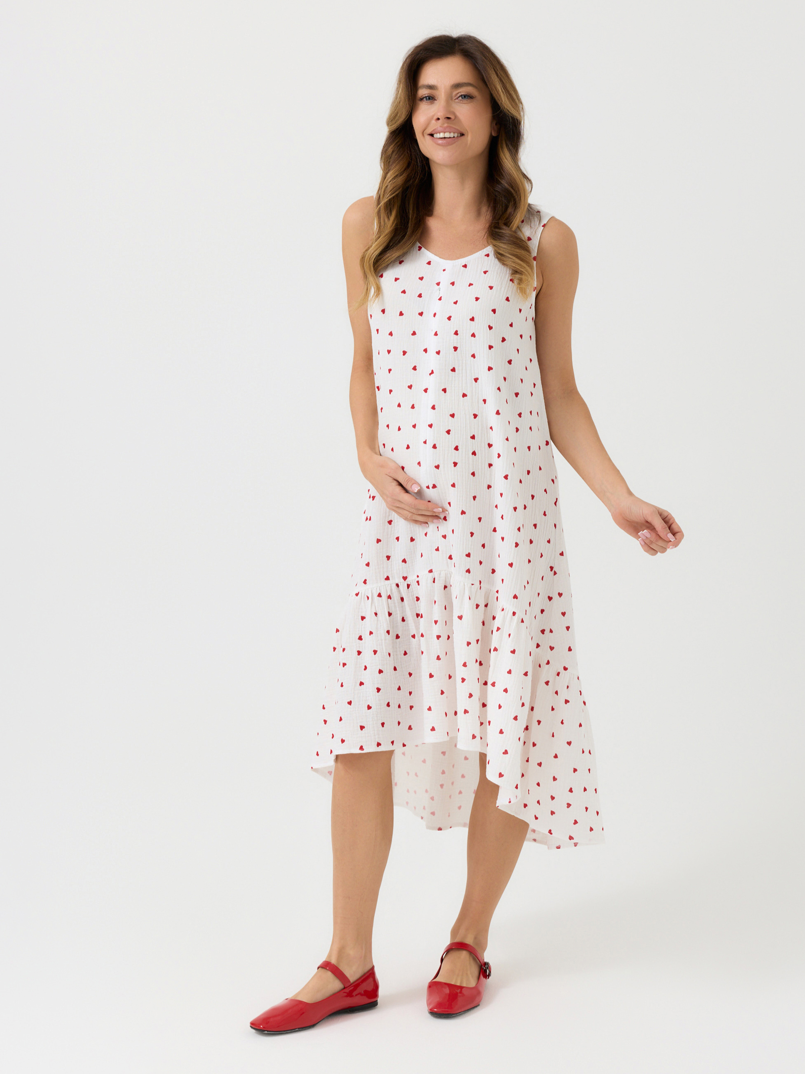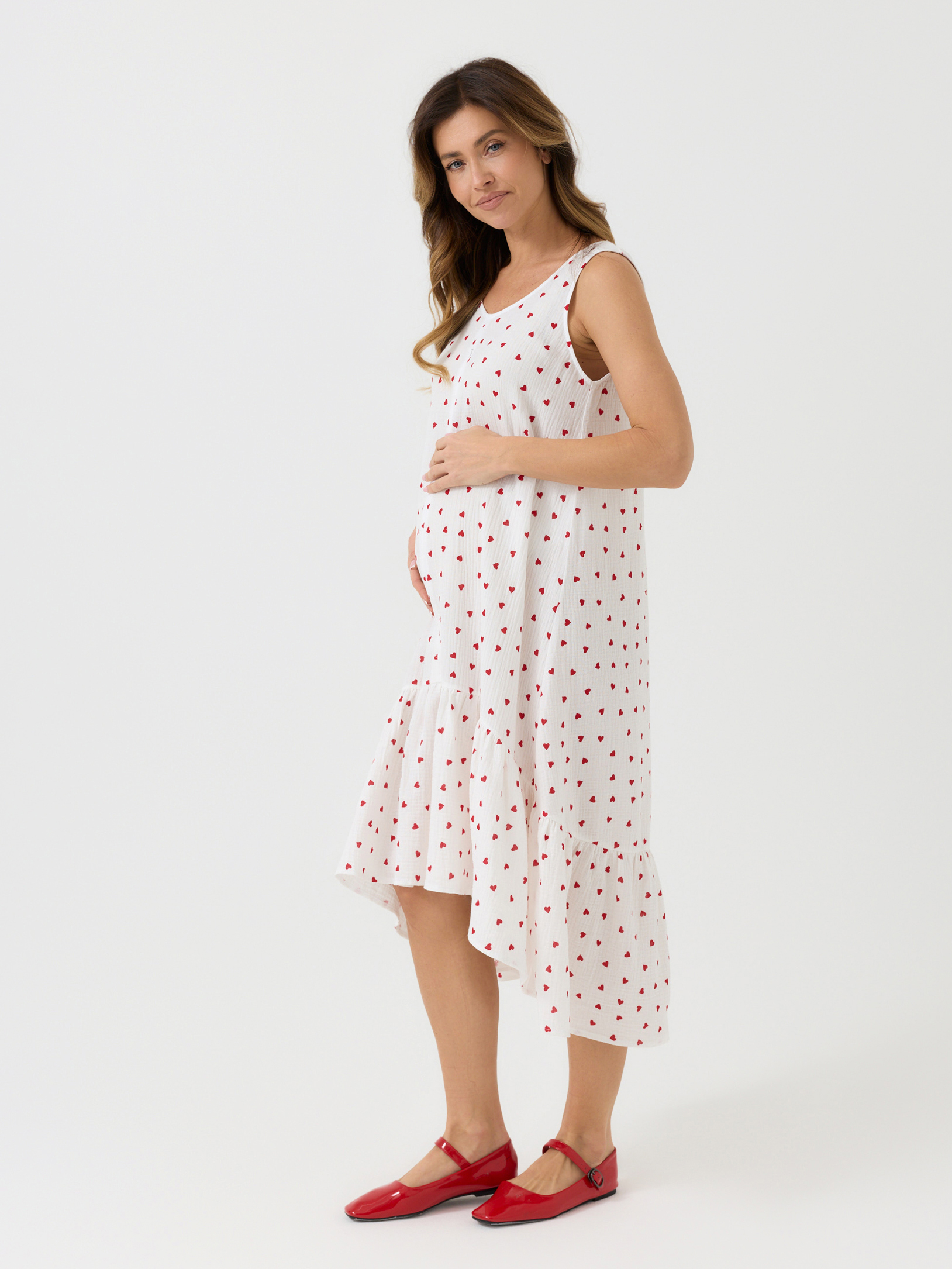 Невесомое воздушное платье - отличный выбор для жаркого лета. Комфортный свободный крой, асимметричный подол - детали идеалльного платья для беременных. Платье для будущих и кормящих мам сшито из легкого муслина - это натуральная хлопковая ткань с жатым эффектом, которая не требует сложного ухода и глажки. Текстура мягкая и легкая, в тоже время ткань - очень прочная, быстро высыхает и прекрасно пропускает воздух.