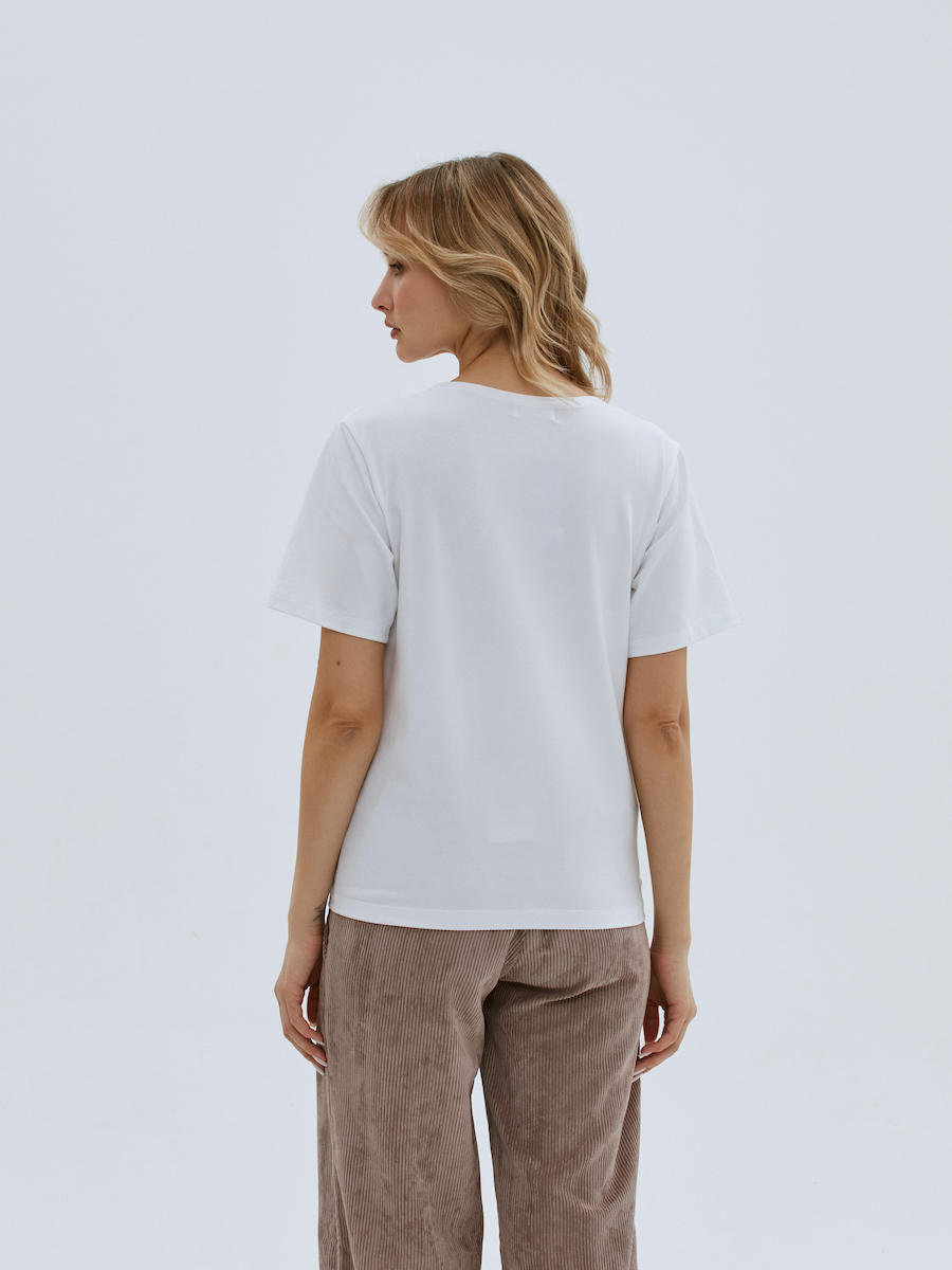 На фото футболка представлена с вельветовыми брюками из нашего ассортимента (см. блок "Сопутствующие товары" ниже).