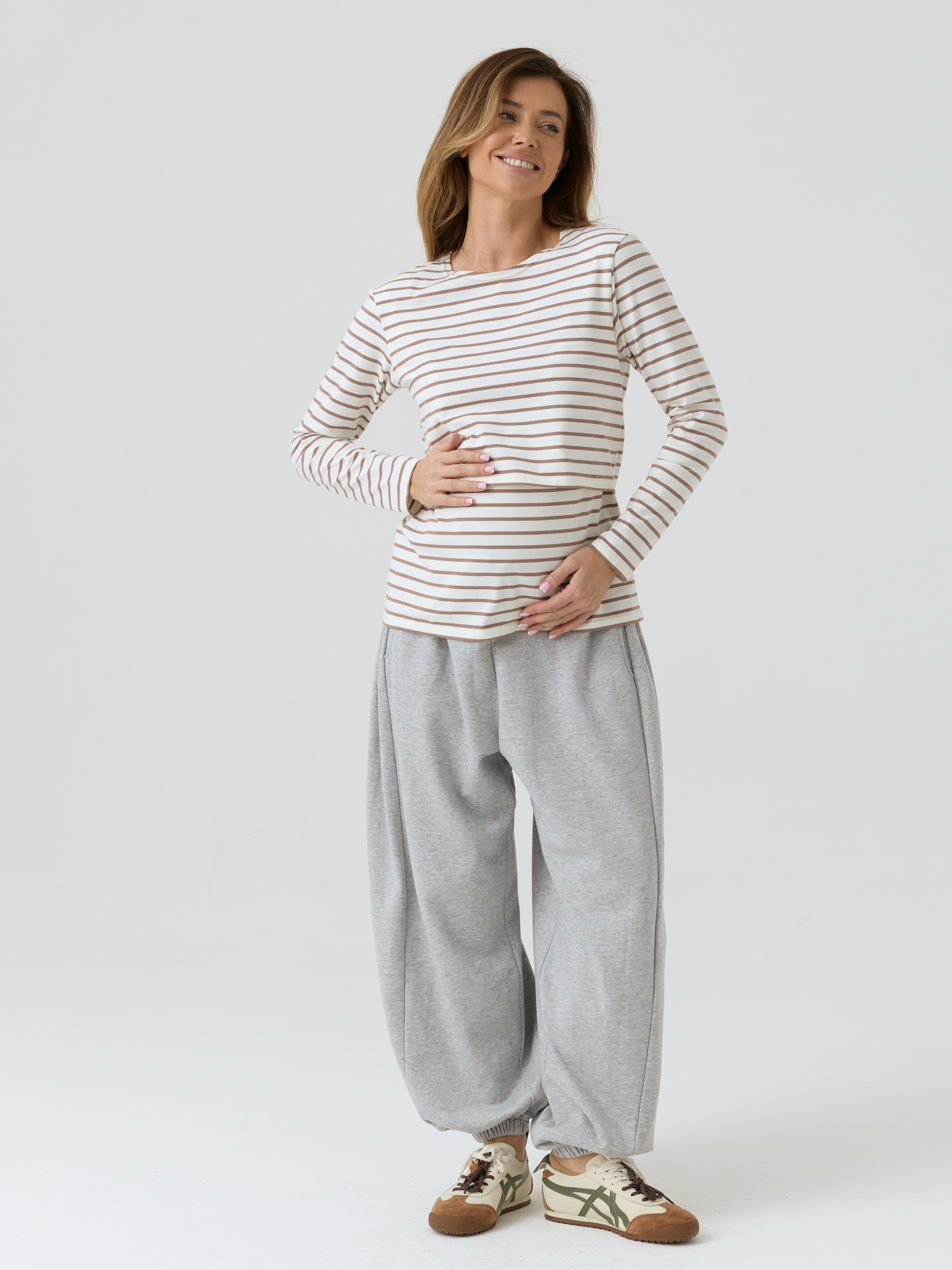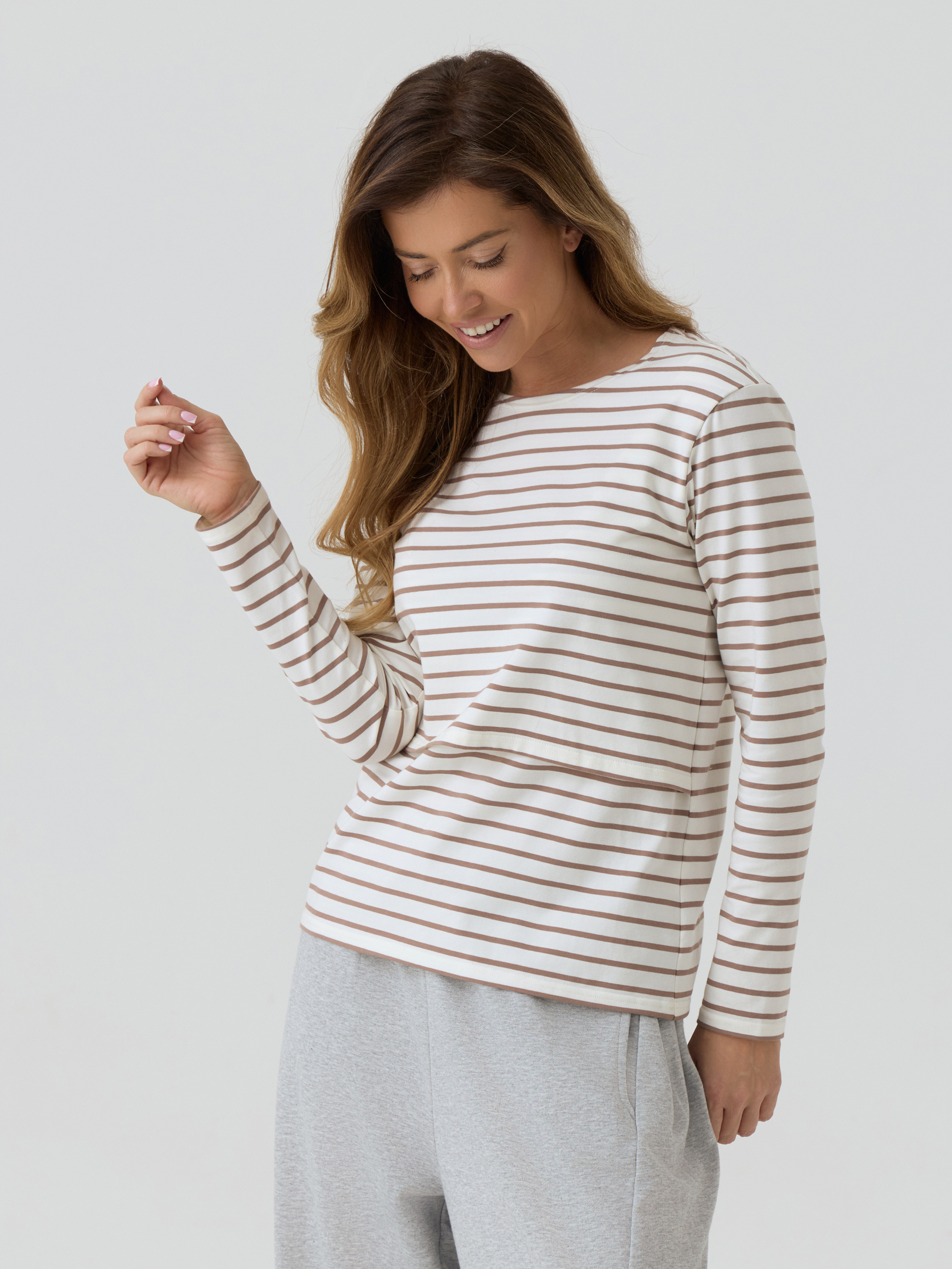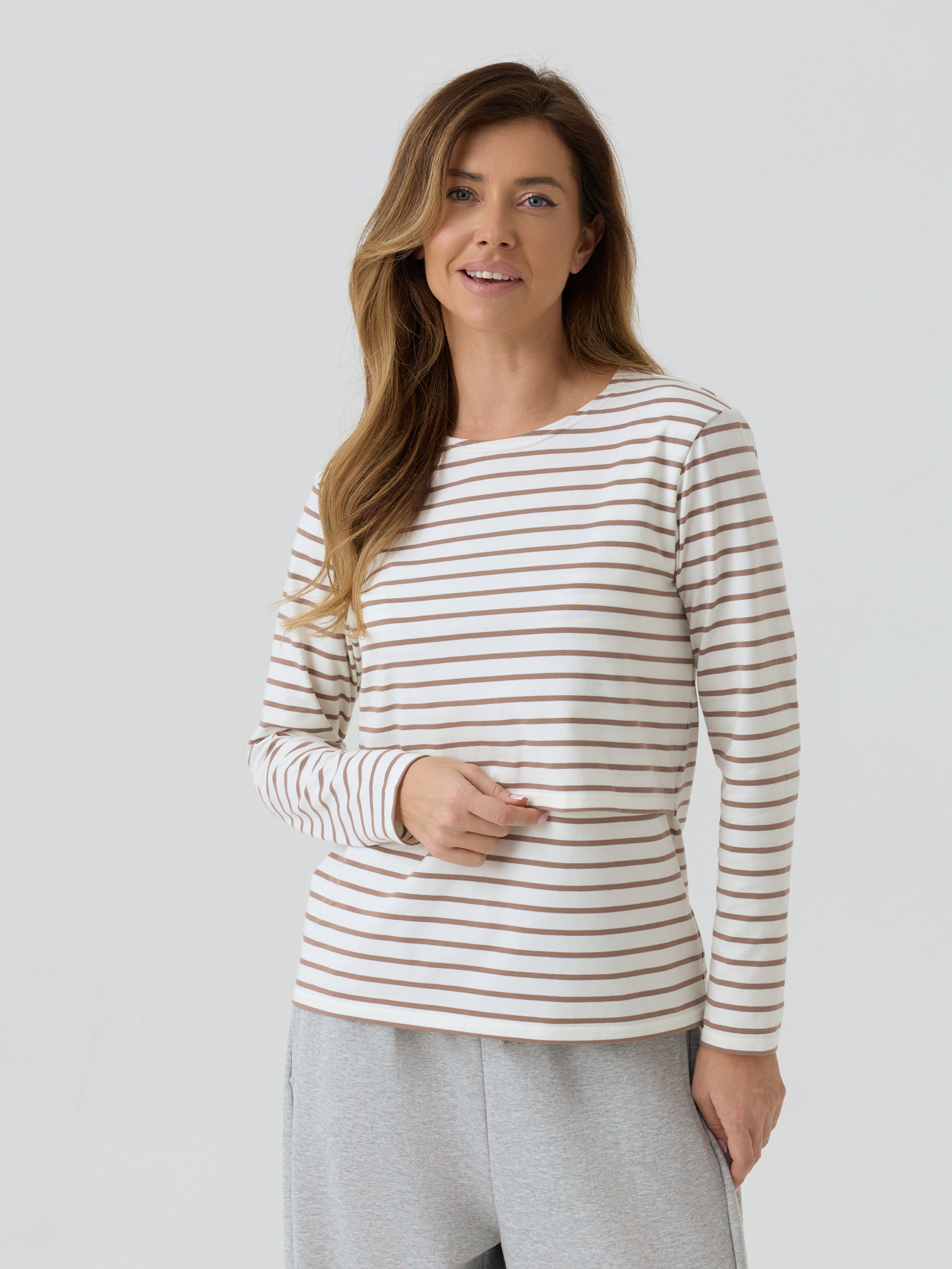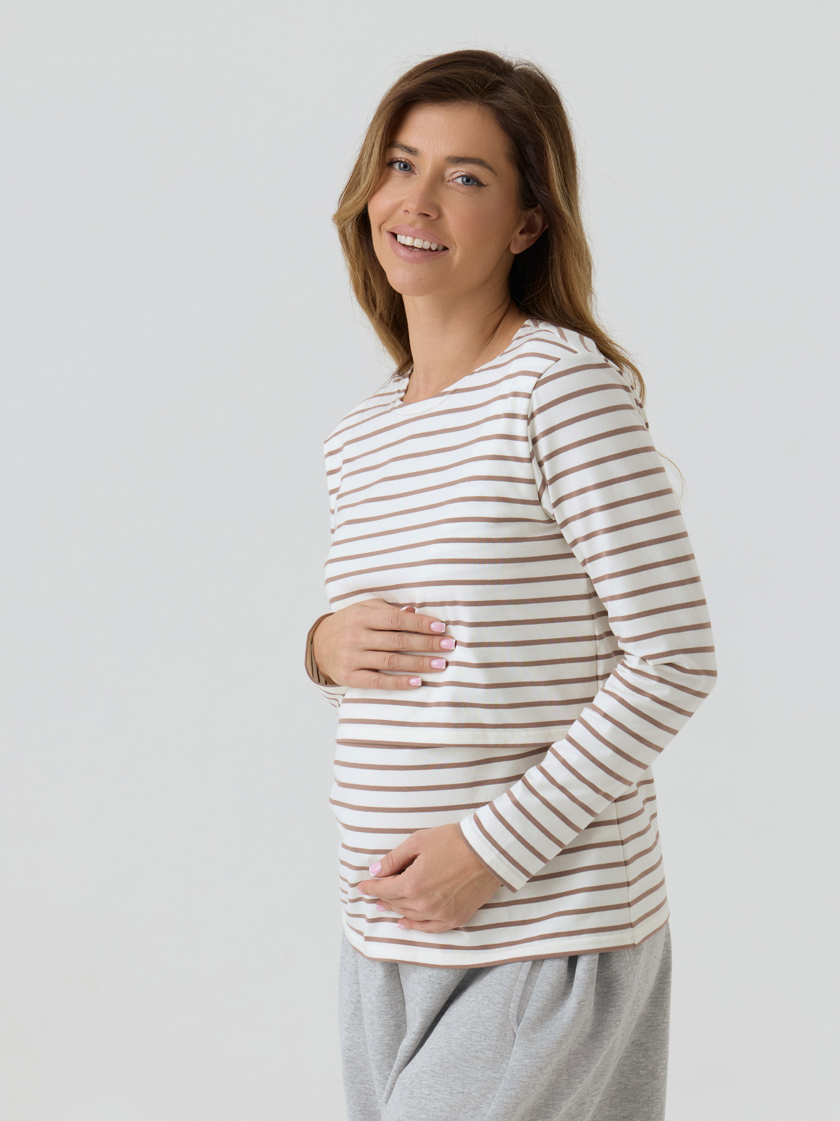 Лонгслив для кормящих "Тельняшка" в бежевую полоску