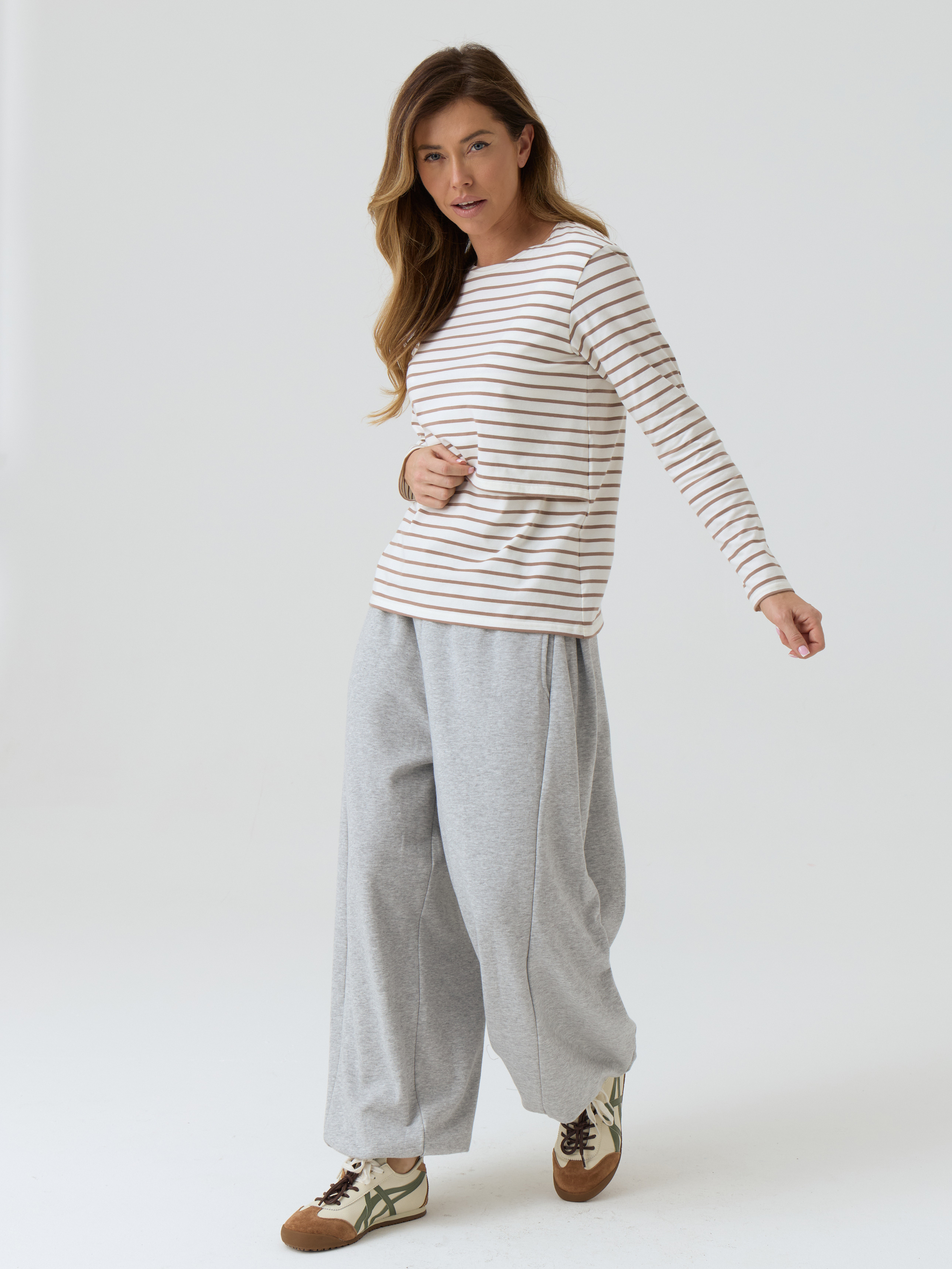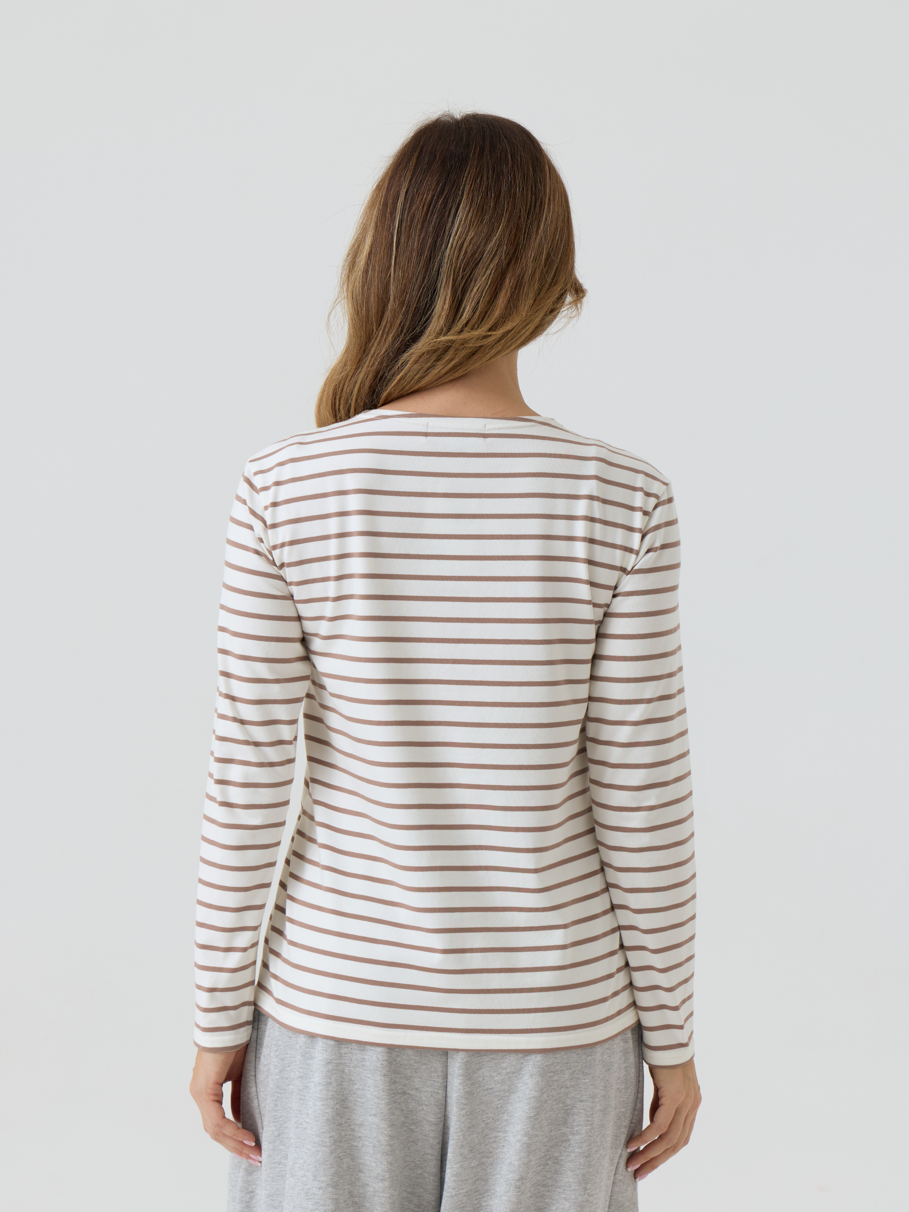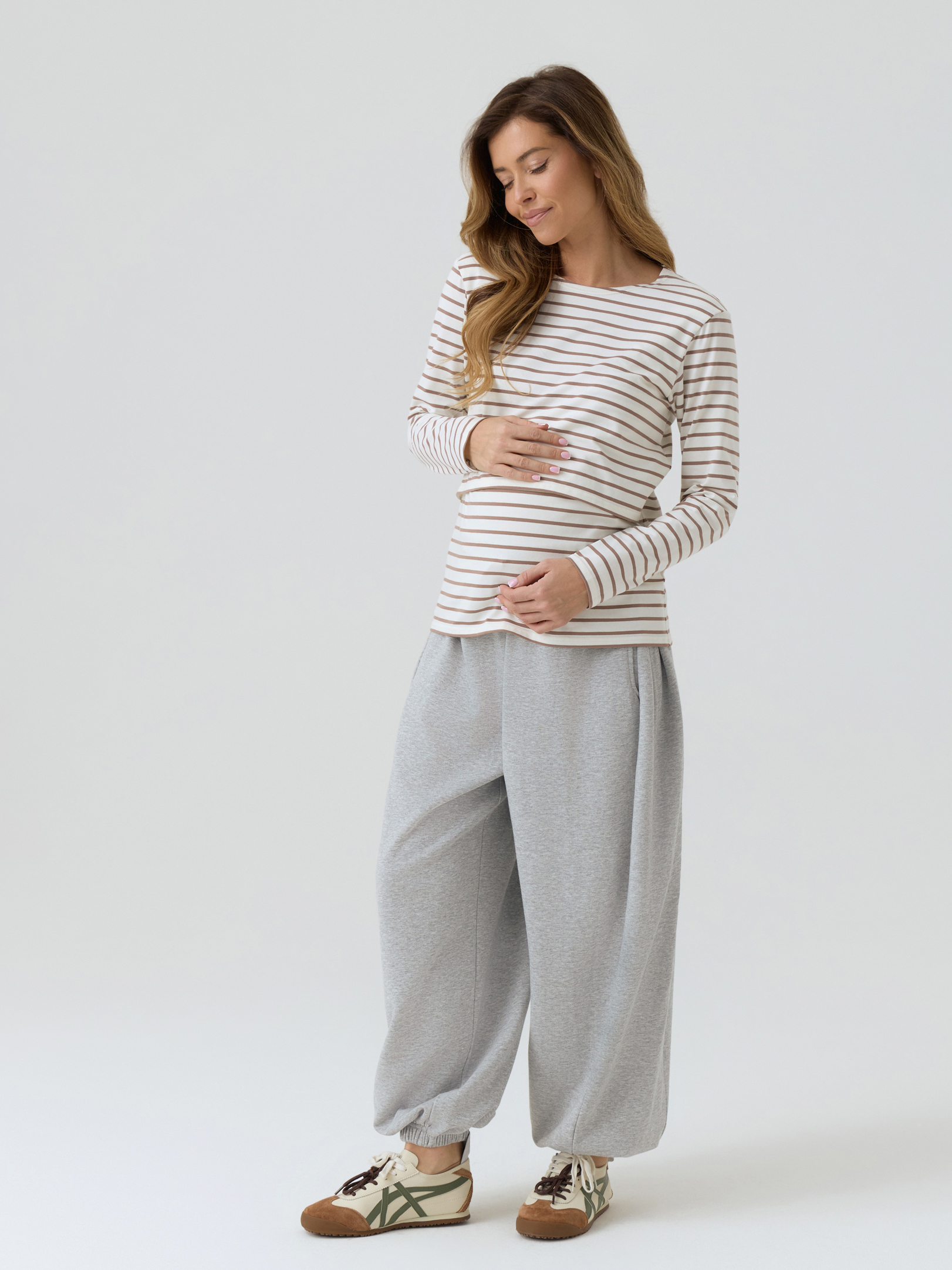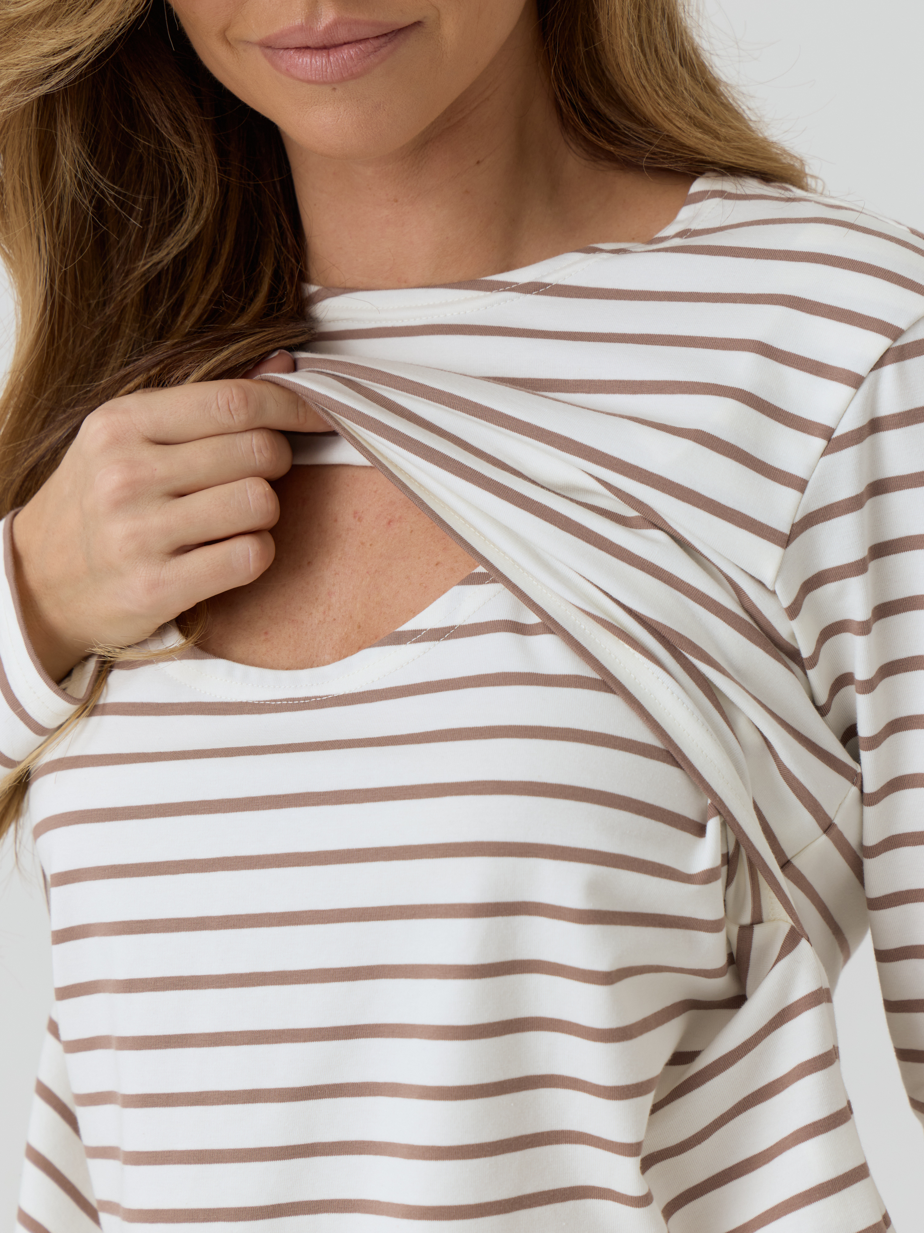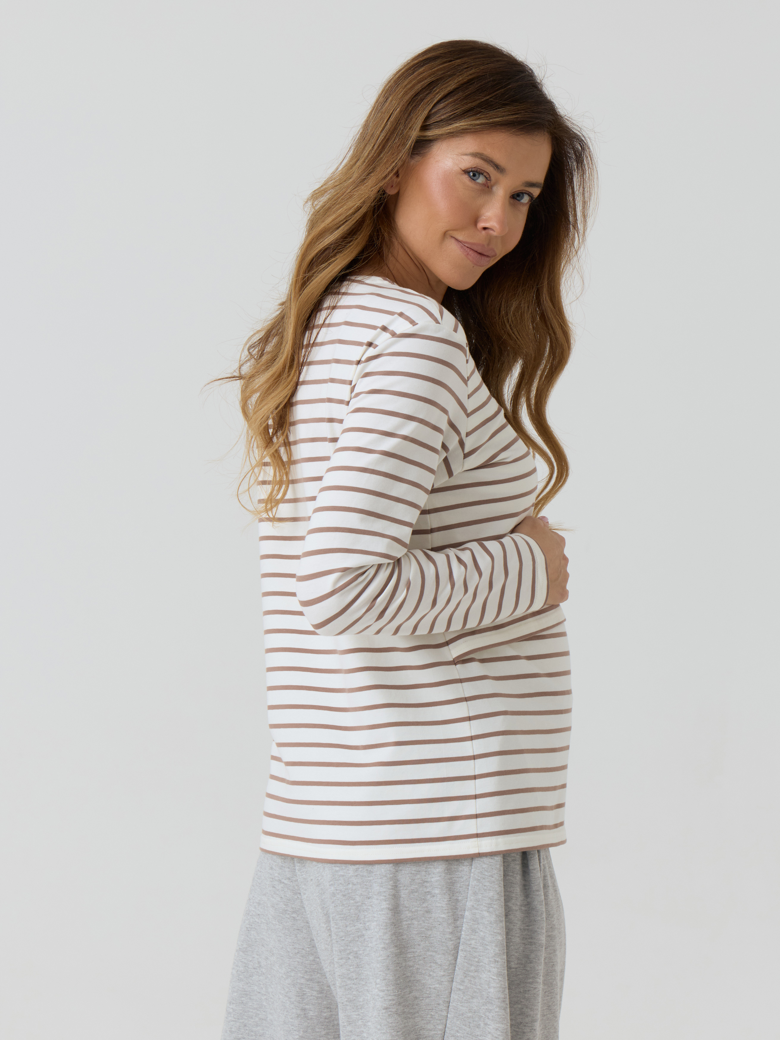 Лонгслив для кормящих "Тельняшка" в бежевую полоску